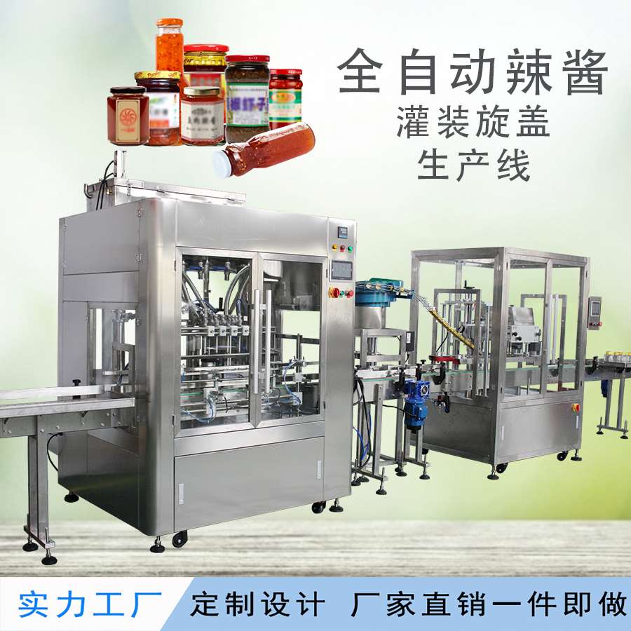 此生產線還適合用于醬料,辣椒醬,果汁飲料,酒類等食品的包裝。